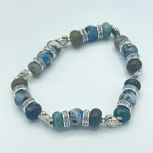Sea Turtle India agate K2 beaded stretch bracelet ONE NEW crystal reiki yoga med