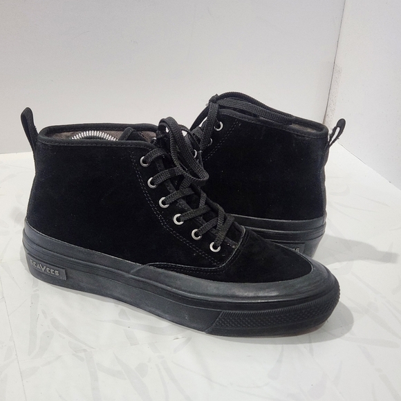 SeaVees Mariners Boots Women's High Top Suede Black Lace Up size 8.5 EUC Men 6.5