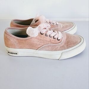 SeaVees for J. Crew Legend Sneakers in Pink Velvet Ribbon Laces Size 7