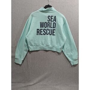 SeaWorld Rescue Crop Sweater JR Girls 2XL Mint Green 1/4 Zip Crop Cut Fleece New