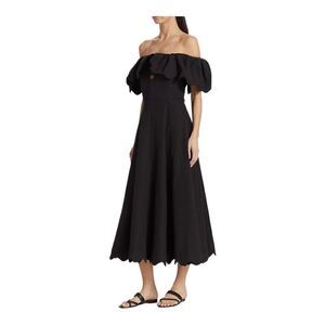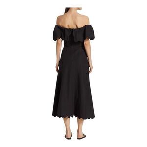 Sea's Leona midi-dress is crafted of stretch cotton. Flaunting a scalloped trim, this style features a ruffled off-the-shoulder neck, a smocked back, and a flared skirt.