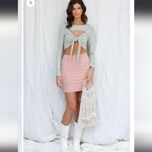 Seafoam Cut-Out Tie Front Soft Crop Top