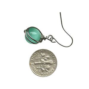 Seafoam Glass Orb Drop Earrings – Wire Wrapped Silver Tone with Keepsake Pouch