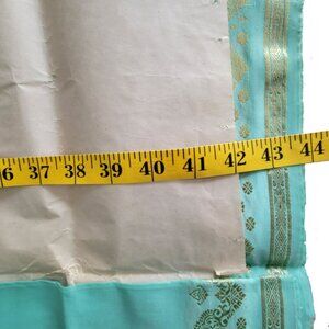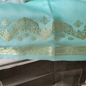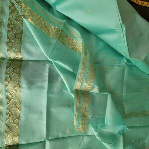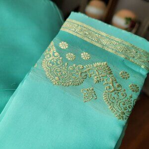 Seafoam Green Silk & Gold Banarasi Saree Sari 2 Pcs NEW 44W x 184L