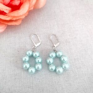 Seafoam colored acrylic beaded earrings are handmade and lightweight.