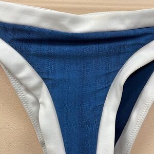 Seafolly Australia Block Party Brazilian Swim Bikini Bottoms Chambray Denim Sz.6