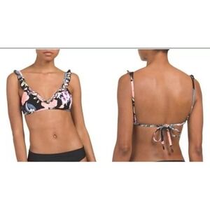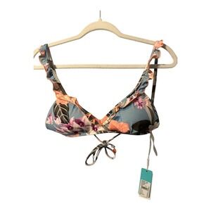 Seafolly Australia Blue Tropical Frill Front Bikini Top, Size 8