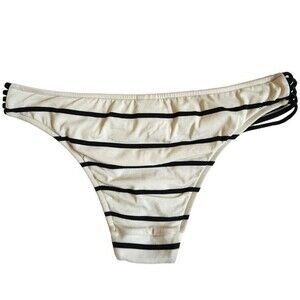 Brand: Seafolly Australia. Occasion: Casual. Beach. Pool. Size Type: Regular. Size (Women's): Euro: 38. Fr: 40. USA: 8. Can: 10. Australia: 12. Material: 93% nylon 7% elastane. CONTRAST: 93% nylon 7% elastane. OTHER: 87% nylon 13% elastane. LINING: 88% nylon 12% elastane. Style: Brazilian. Rouleau Brazilian Bottom. Color: Black. White. Pattern: Striped.