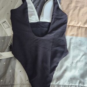 Slice Of Splice Deep V Neck One Piece - White/Black