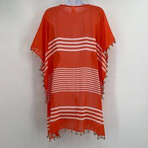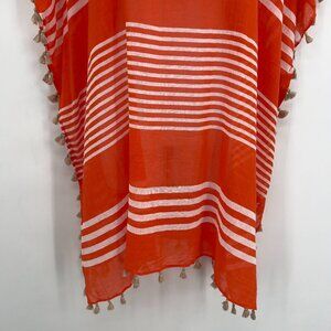 Lightweight and breezy, this Seafolly Australia beach cover-up is perfect for summer getaways. Made from 100% cotton, it features a bold red base with ivory horizontal stripes and playful tassel trim along the sides and hem. Flowy, oversized silhouette with a V-neckline—designed for comfort and ease over your favorite swimwear. Size: One Size (O/S).