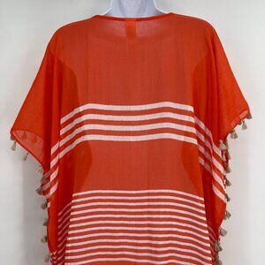 Seafolly Australia Striped Cotton Tassel Trim Beach Cover-Up One Size
