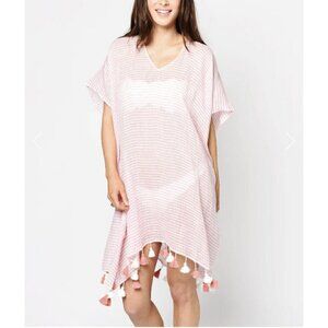 Seafolly Australia Tassel Linen Swimwear CoverUp One Size pink Kaftan tunic top