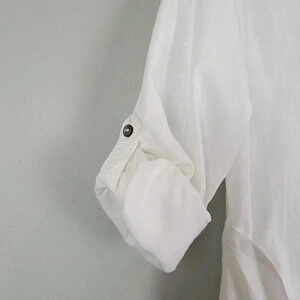 Please see picture shirt has a small light line stain in arm. No holes or tears.