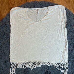 Seafolly Australia White V-Neck Swimsuit Coverup Fringe Hem Size S