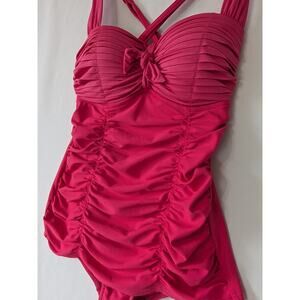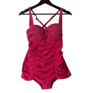 Seafolly Australia Womens Pink Pleated Ruched One Piece Swimsuit Size 8 USA 4