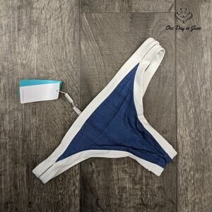 Dive into the azure depths of elegance with Seafolly's Block Party Brazilian Bikini Bottom. This denim-hued marvel, crafted from a luxurious blend of polyester and spandex, promises to embrace your curves like a summer's caress. New and untouched, it awaits its debut on sun-drenched shores or by glamorous poolsides.