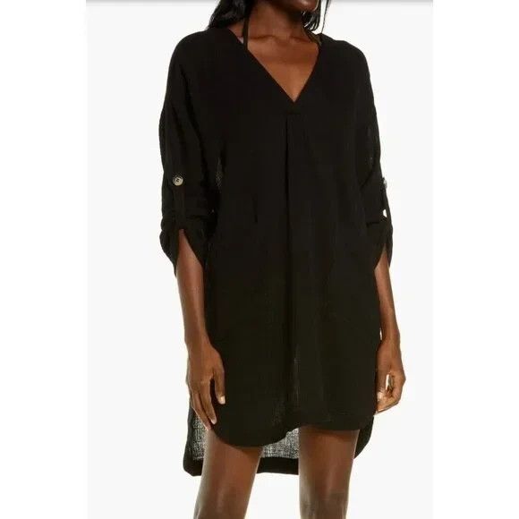 Seafolly Essential Cover Up Dress Womens Small Black DoubleCloth Tunic
