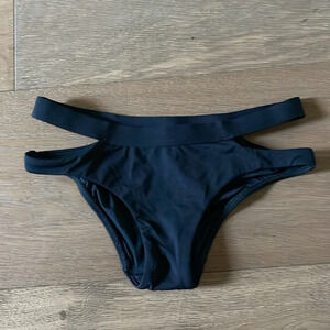 This sleek and sporty style bikini bottom has quickly become a best seller. With regular hipster coverage, has side splits on the hip band giving it a unique and stylish detail. Great for anyone who loves minimal fuss with an edge. Good condition.