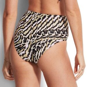 US size 8 Embrace your wild side with this stylish high-waisted zebra print bikini bottom. Perfect for making a statement at the beach or pool.