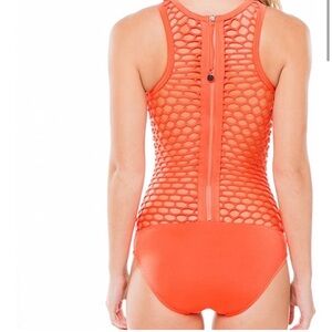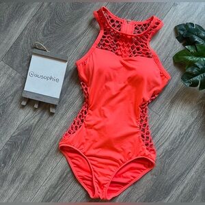 Seafolly Mesh About High Neck Maillot One Piece Swimsuit in Nectarine. Size M