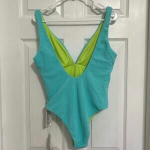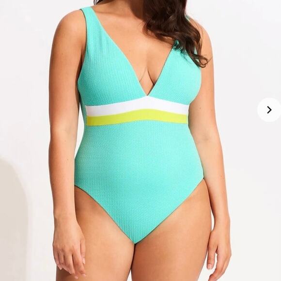 Seafolly NWT Slice Of Splice Deep V Neck One Piece Swimsuit Size 10
