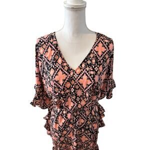 New Seafolly Inka Gypsy beach Kaftan coverup. Gorgeous pink & black boho print with tie at waist. One size, 100% viscose