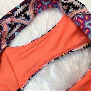 Seafolly Sahara Nights Tassel Trim Bralette and hipster Bikini. Bikini bottoms are a US size 4, top does not have size tag but please check measurements, seems comparable. Does have removable bra padding. The inside lining looks like it has a little bleed through, please see pictures. Outside in very good gently loved condition with no flaws.
