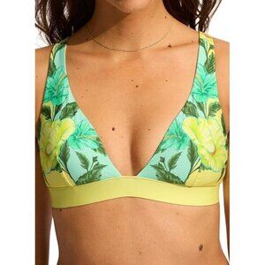 Seafolly Standard Longline Tri Bikini Top Swimsuit Garden Party Limelight 10 NWT