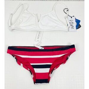 Seafolly + VDM 2 Piece Bikini Set Medium Revolve Stripe Red White Summer Beach
