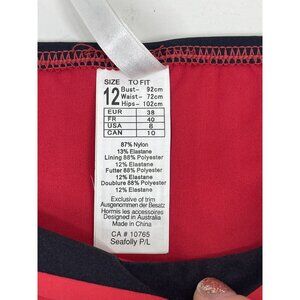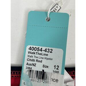 Bikini bottom is Seafolly Walk the Line hipster in chilli red US size 8 (Australian size 12).