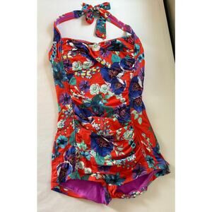 Seafolly Vintage Look Boy Leg Malliot Multi Color SIze XS See Measurements as the tag has been cut out
