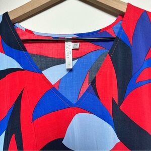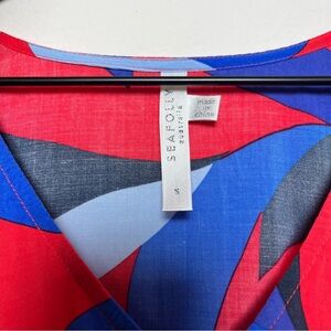 Seafolly Women Cover Up Dress Small Red Black Abstract Resort Cap Sleeve Mini Vacation