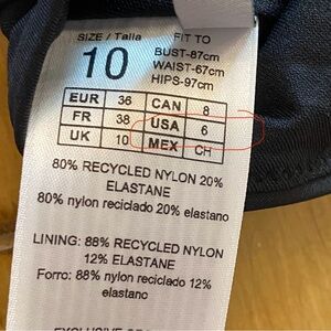 Elegant one-piece swimsuit by Seafolly. New with tags size 6. I included pictures of a blue bathing suit showing what the bathing suit looks like on and the cute back design. It has pads at the bus, but no underwire. Thank you for considering my item.🌷