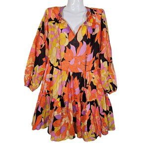 Seafolly Womens Floral Long Sleeve Palm Spring Tier Swing Dress Black S/M NWT