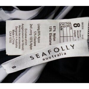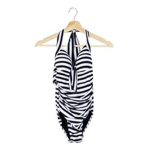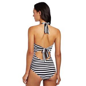 Seafolly Womens Halter One-Piece Swimsuit Black & White Striped Size 8 modest