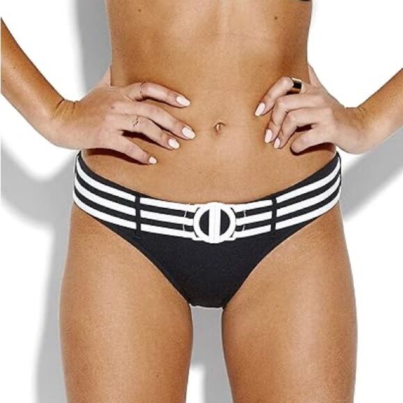 Stylish black and white belted bikini bottoms by Seafolly. New without tags, still has hygiene tape. Tried on but never worn.