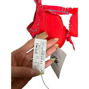 Seafolly bikini top bright red plaid frilly patterned NWT Size 8