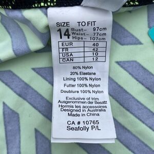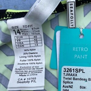 Seafolly Retro Pant Green & Black Abstract Print Bikini Swim Bottom. Size 10 NWT