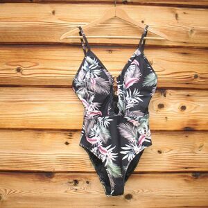 Seafolly Women's Ring Detail One Piece Swimsuit Black Tropical