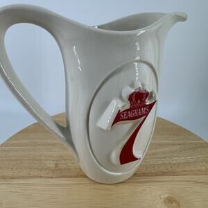 Seagrams 7 Crown Whiskey Ceramic Bar Pitcher 7" Tall VTG Barware Pub Bar