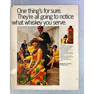 Seagram's 7 Crown Whiskey "The Sure One" Flaw! Vintage Print Ad 1968 LOOK Magazine April 16, 1968, About 10 x 13 Inches. Carefully shipped.