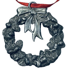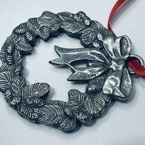 Seagull Pewter Christmas Ornament Hanging Silver Wreath w/Bow Etched 1983 VTG