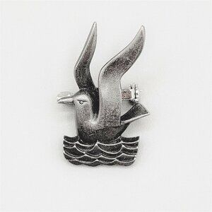 Seagull Sea Bird Wings Up on Waves Water Brooch Pewter Silver Tone Pin
