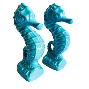 Seahorse Ceramic Ocean Nautical Teal Turquoise Salt and Pepper Shaker Set