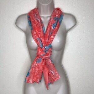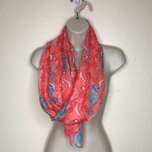 Seahorse Graphic Coral Aqua Teal Long Rectangle Scarf 22 X 71 Lightweight