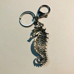 Add a touch of oceanic charm to your accessories with this beautiful seahorse keychain. Featuring sparkling crystal accents, this keyring is perfect for sea lovers and adds a unique flair to any set of keys.