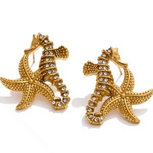 Seahorse Starfish Crystal 18K Gold Stainless Steel Waterproof Earrings