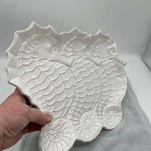 Seahorses Figural Embossed Terracotta/Ceramic Serving Plate/Platter