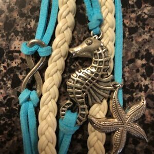 Seahorse starfish infinity sign teal rope bracelet Never worn! Adorable and adjustable sizing!