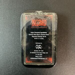 Official Diablo III “Sinamints” promotional tin from BlizzCon 2008. Factory sealed and unopened, featuring Diablo III artwork on the front with embossed detailing. Originally distributed exclusively at the convention as part of Blizzard’s promo merchandise. A rare collectible for Diablo fans and BlizzCon memorabilia collectors.